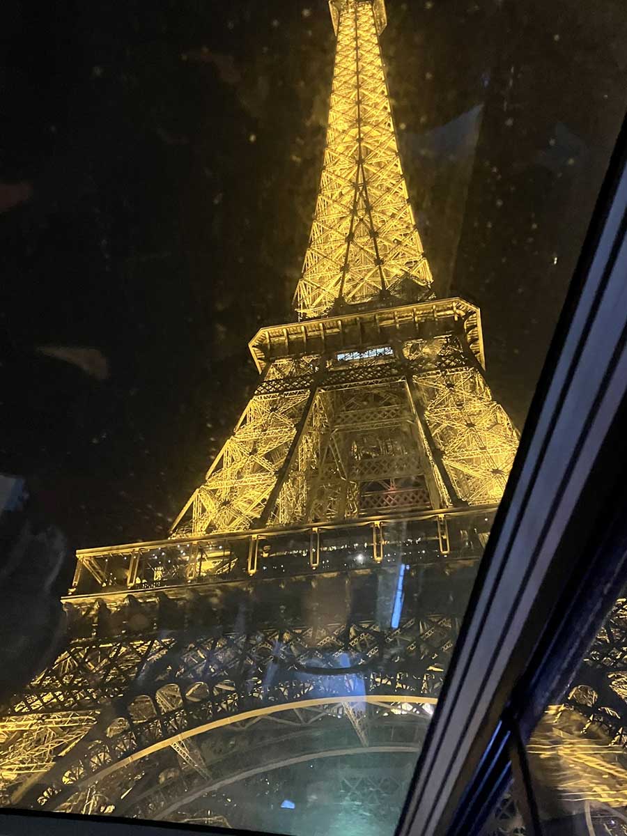 Bonus : la Tour Eiffel qui scintille juste devant nous. Tout le bus crie « Ooooooh ! » en chœur devant l’apothéose de cette dame de fer qui a résisté aux récalcitrants après l’exposition universelle de 1889 qui voulaient la démolir: 312 photos (dont 310 de la Tour Eiffel sous tous les angles possibles) et l’impression d’avoir vécu une expérience mystico-bucolique. A faire à deux évidemment avant de se diriger à pied vers les vitrines juste pour confirmer au milieu des badauds la magie de Noël puis de finir la soirée dans un des restaurants ou cafés de la plus belle avenue du monde pour déguster la réédition du fameux cocktail 1925 mis au point par Adama Ballo, mixologie et ambassadeur de la Maison Hennessy.